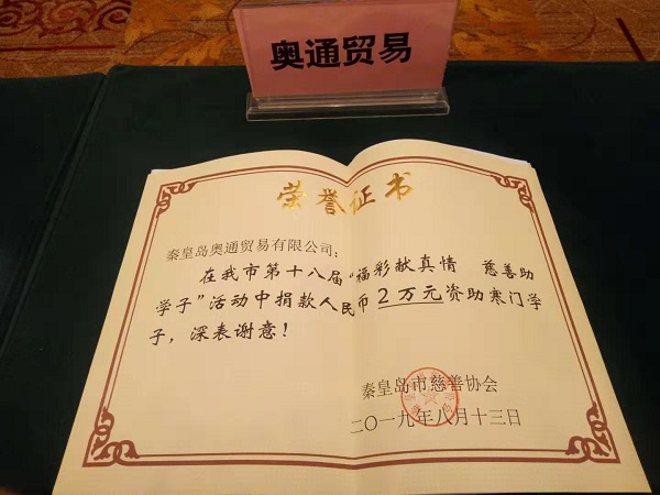 8月13日上午,2019年秦皇島市“福彩獻真情•慈善助學子”助學金發(fā)放儀式在秦皇島大酒店舉行。市委副書記丁偉、市人大常委會副主任曹玉寶、市政府副市長廉茹艷、市政協(xié)副主席鄭泉出席儀式。今年是市民政局、市福彩中心、市慈善協(xié)會組織“福彩獻真情•慈善助學子”公益助學活動的第18年,也是我公司參與資助活動的第10年。在此活動持續(xù)開展的18年中,活動累計投入4100多萬元福彩公益金,資助了7300多名寒門學子圓夢大學,成為我市作為“全國文明城市”“中國最具愛心城市”的深度實踐,贏得社會各界的廣泛贊揚。出席儀式的市領導和市民政局局長趙懷木一起為受助學生代表發(fā)放了助學金,并為我公司及其它捐資助學的愛心企業(yè)頒發(fā)了榮譽證書。隨后,往屆受助學生代表向大家分享了自己在助學金的幫助下圓夢成長的故事,應屆受助學生代表講述了自己坎坷的求學經(jīng)歷和得到資助后對未來美好生活的向往。希望他們一定要好好珍惜來之不易的求學機會,心懷感恩,努力學習,不懼困難,不負光陰,立志成為建設祖國和家鄉(xiāng)的棟梁之才。