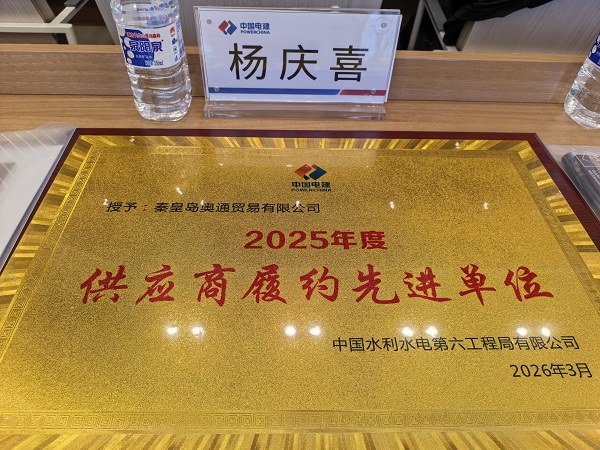 中國電建集團中國水利水電第六工程局有限公司(以下簡稱“水電六局”)2026年度供應(yīng)鏈年會暨合作共贏推進會在遼寧沈陽隆重召開。會上,秦皇島奧通貿(mào)易有限公司(以下簡稱“奧通公司”)憑借卓越的履約能力、優(yōu)質(zhì)的商業(yè)信譽和高效的服務(wù)水平,從眾多合作伙伴中脫穎而出,榮獲水電六局2025年度“供應(yīng)商履約先進單位”稱號。這一榮譽的取得,標(biāo)志著奧通公司在供應(yīng)鏈協(xié)同與戰(zhàn)略合作領(lǐng)域的綜合實力再次獲得行業(yè)龍頭企業(yè)的充分肯定。